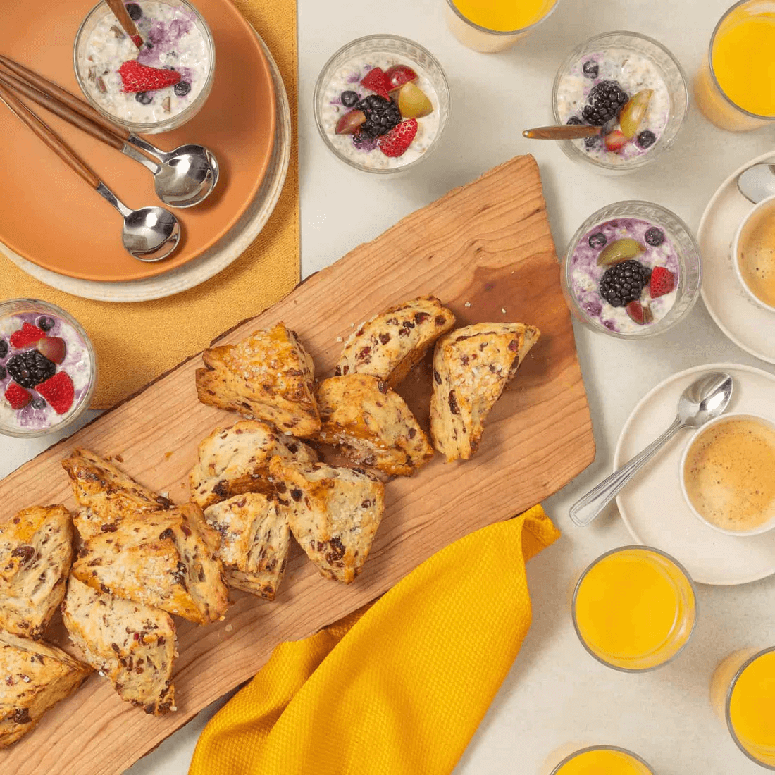 - Assortiment de viennoiseries, et autres options déjeuner / pause-café.